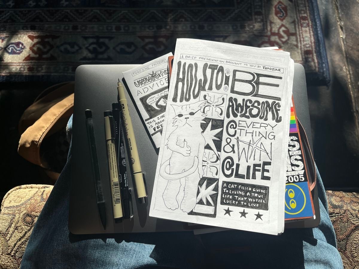 just everything you need to know. handwritten and drawn by yours truly :) 8pgs of cats & love & life artmaking as an alternative to death